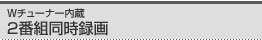 ゴールデンタイムなど、見たい番組が重なってもWチューナー搭載で、2番組を同時に録画することができます。