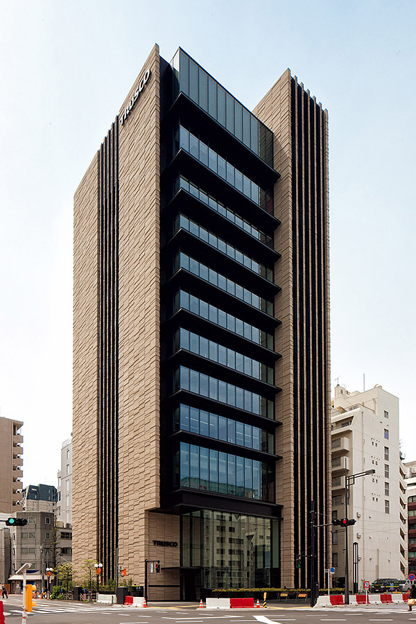 大阪から東京・新橋への本社移転に伴い建設された新社屋で、新しく整備された環状2号線に面して建つ。地上12階、地下1階建て。ファサードは、花崗岩を凹凸が出るようランダムに積層したユニットとガラスで構成され、1階エントランスはガラス張りの2層吹き抜けで開放的なデザインである。