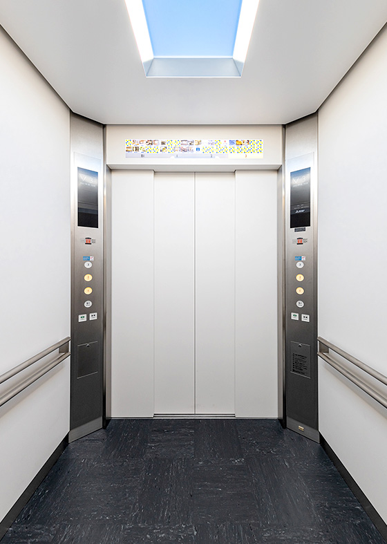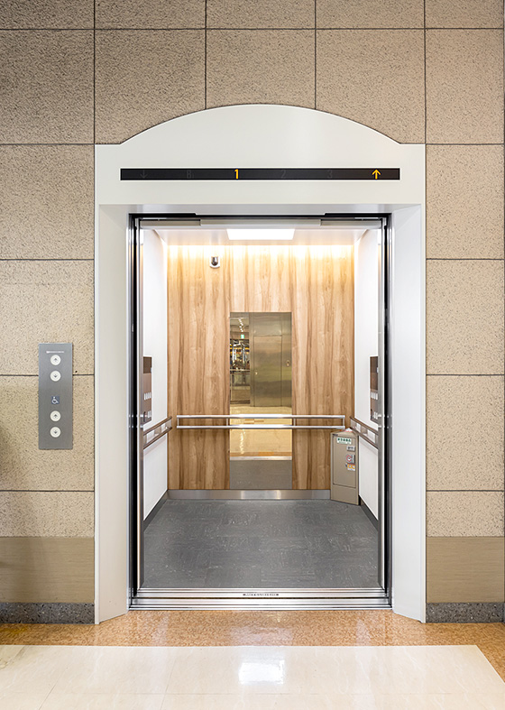 安全装置や制御機器だけでなく、車いす仕様とかご室の快適性向上を実現した(エレベーター:No. 8) -