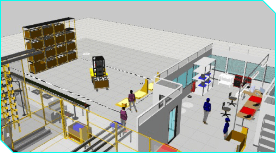 人、ロボット、AGVの導線や稼働率のシミュレーション
