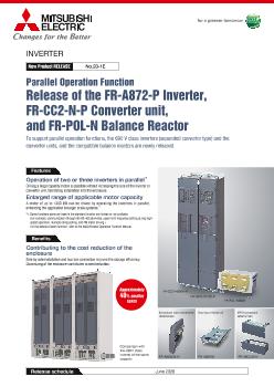 Release of the FR-A872-P Inverter, FR-CC2-N-P Converter unit, and FR-POL-N Balance Reactor