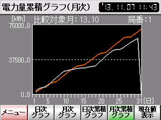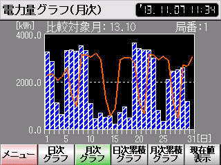 GOT1000と三菱電機株式会社 エネルギー計測ユニット EcoMonitorLight (EMU4-BD1-MB/EMU4-HD1-MB)をMODBUSR/RTU(RS-485)で接続し、使用電力量と累積を日次/月次グラフで表示するサンプルです。