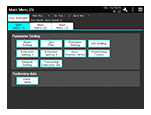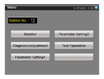 GOT2000 とサーボアンプを接続し、サーボアンプへのパラメータ値の変更、モニタ、テスト運転などを行うサンプル画面です。 【GOT Drive】