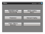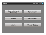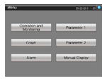 | 三菱電機株式会社 インバータ FREQROL-A800シリーズ FR-A820-15K サンプル画面データ GOT2000とインバータFREQROL-A800(FR-A820-15K)をシリアル(RS-485)で接続し、インバータへの運転速度・回転方向の変更、出力周波数・出力電流のモニタなどを行うサンプル画面です。 ・対応画面サイズ(解像度) :VGA(640×480) ・対応作画Ver:GT Designer3 Ver.1.126G以降 |