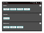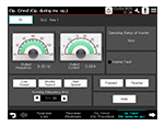 GOT2000 とインバータを接続し、インバータへの運転速度・回転方向の変更、出力周波数・出力電流のモニタなどを行うサンプル画面です。 【GOT Drive】