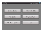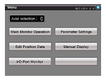 GOT2000 と株式会社アイエイアイ製ロボットコントローラを接続し、各種データのモニタ、変更などを行うサンプル画面です。