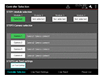 GOT2000とMELSEC iQ-RシリーズカメラレコーダユニットRD81RC96-CAを接続し、ネットワークカメラ映像のライブ表示、PTZ制御、プリセット機能を行うためのサンプル画面です。