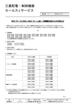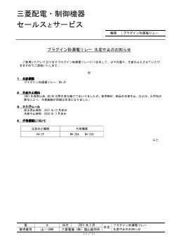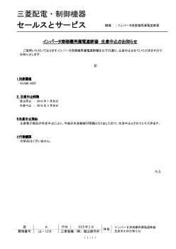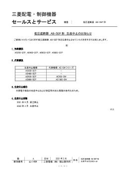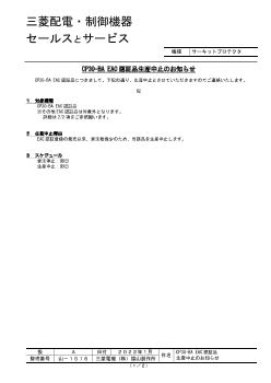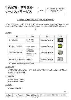- 受注停止時期:2018 年9 月末日 生産中止時期:2019 年3 月末日