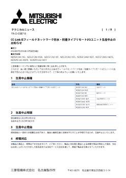 CC-Link IEフィールドネットワークリモートI/Oユニット一部機種受注生産への移行のお知らせ