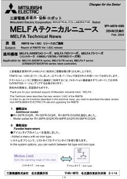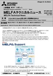 産業用ロボットMELFA 関連製品の技術情報やお知らせです。