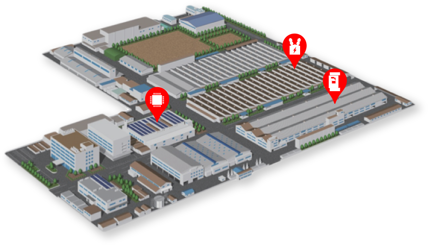 福山製作所は、産業や社会、そして人々の暮らしを支える”電気”に欠かせない配電保護、計測制御をはじめとする各種機器を開発・製造しています。
