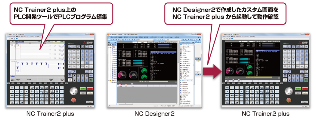 NC Trainer2 plus上のPLC開発ツールでPLCプログラム編集/NC Designer2で作成したカスタム画面をNC Trainer2 plus から起動して動作確認