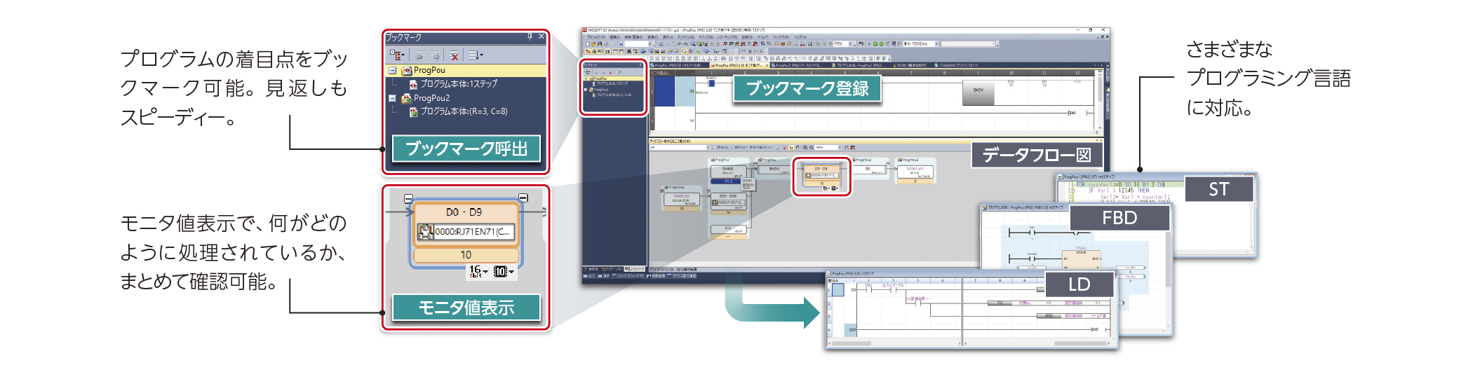 フロー図からプログラムの該当箇所にジャンプするので、原因追究が容易になります。