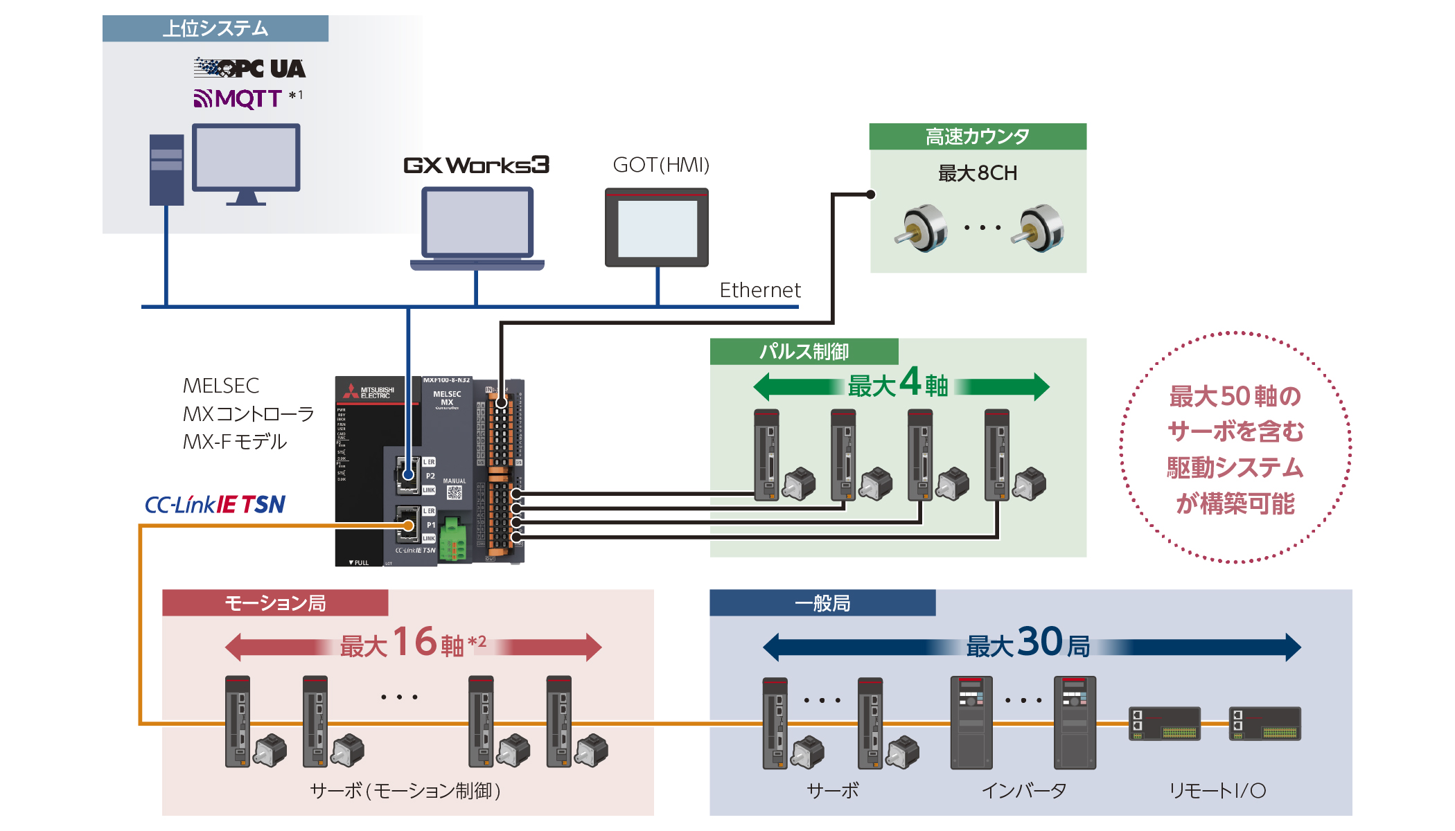 *1: MELSEC iQ-Fシリーズの一部の入出力ユニットも増設できます。詳細は「MELSEC MXコントローラ(MX-Fモデル)ユーザーズマニュアル(SH(名)-082633)」をご参照ください。