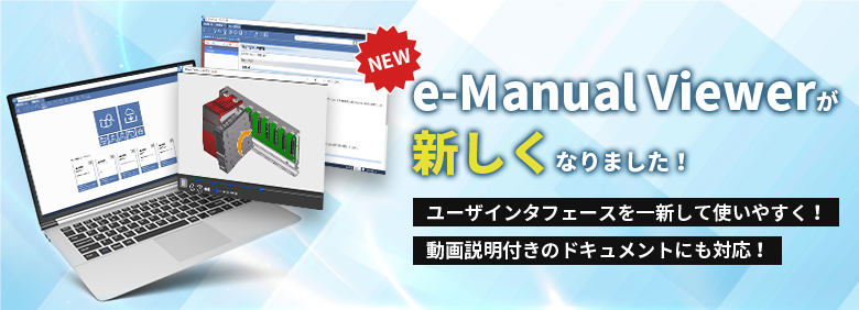 e-Manualは、FA機器ユーザーのために製品のラインナップから使用方法など必要な情報を素早く入手できる電子書籍です。
