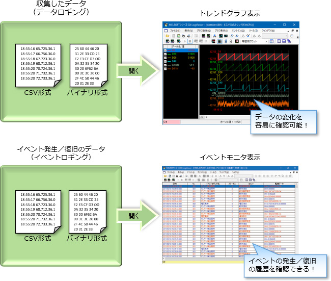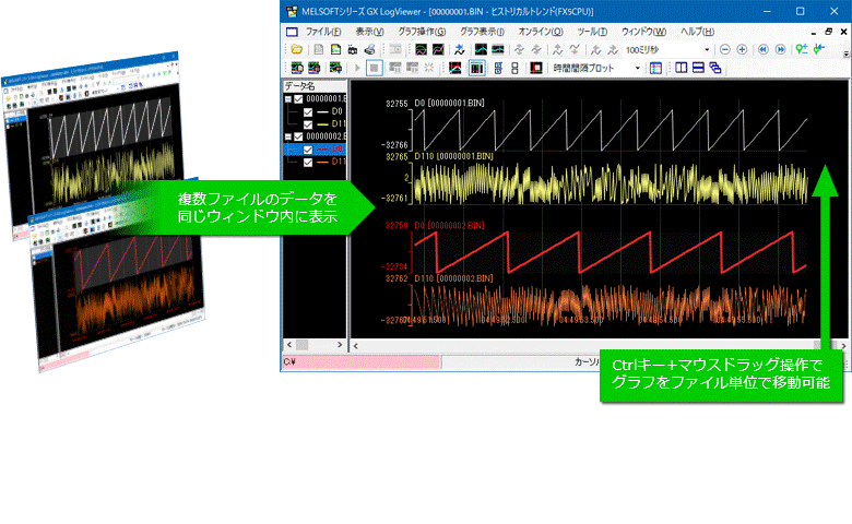 ロガーユニット、CPUデータロギング機能などで収集したロギングファイルを表示する専用ビューアです。