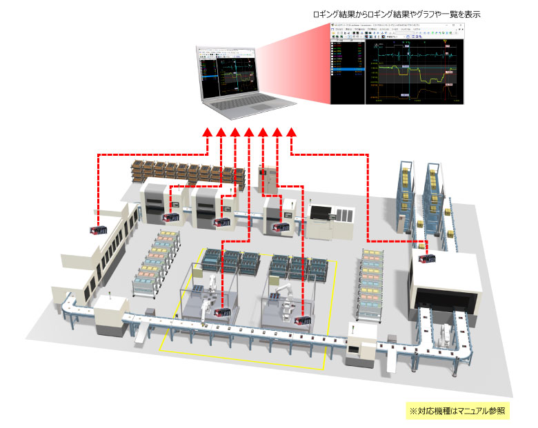 MELSOFT GX LogViewerは、生産現場でデータロギング機能を持つユニットから収集したロギングデータの専用ビューアです。