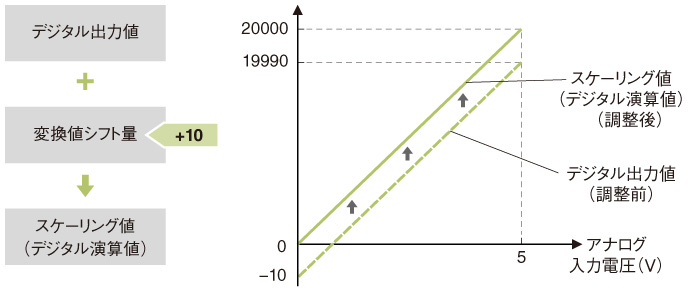 設定した変換値シフト量をデジタル出力値に加算(シフト)する機能です。