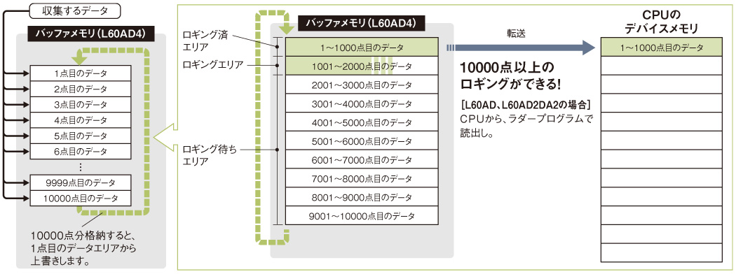 1001~2000点目のデータをロギング中に、1~1000点目のデータをCPUのデバイスメモリに転送します。