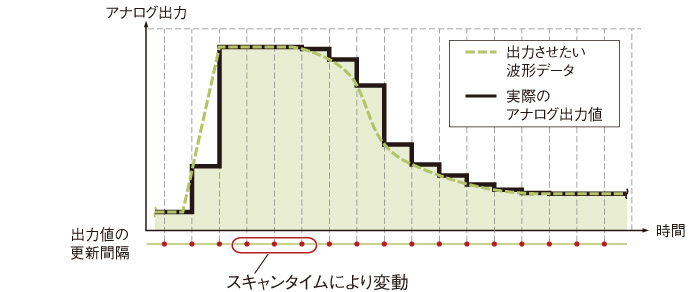シーケンススキャンタイムに依存しない、高速で滑らかなアナログ出力を実現します。