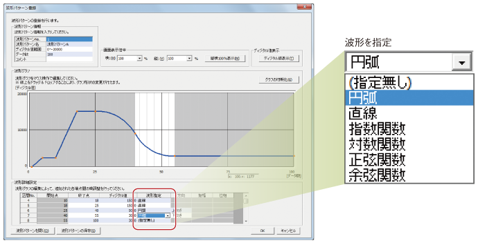 波形パターンを(複数個)登録しておけば、ツール上で自由に組み合わせることが可能