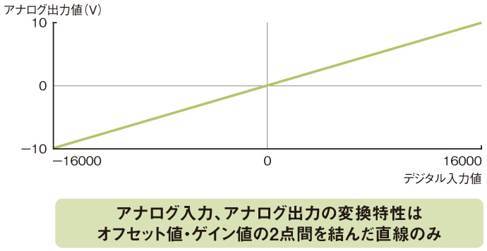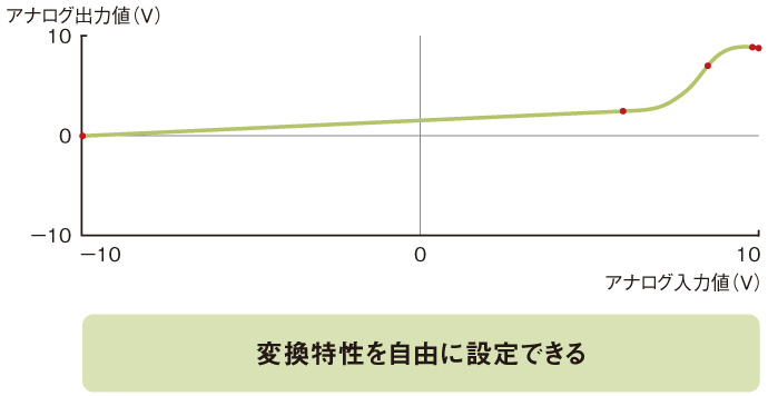 | アナログ出力 | D/A変換チャンネル(CH3、CH4)の変換特性を自由に設定できます。 |
