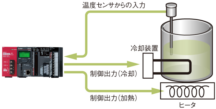 目標温度が外気温より低いときや、制御対象が湿度変化しやすいときに、加熱と冷却を行います。