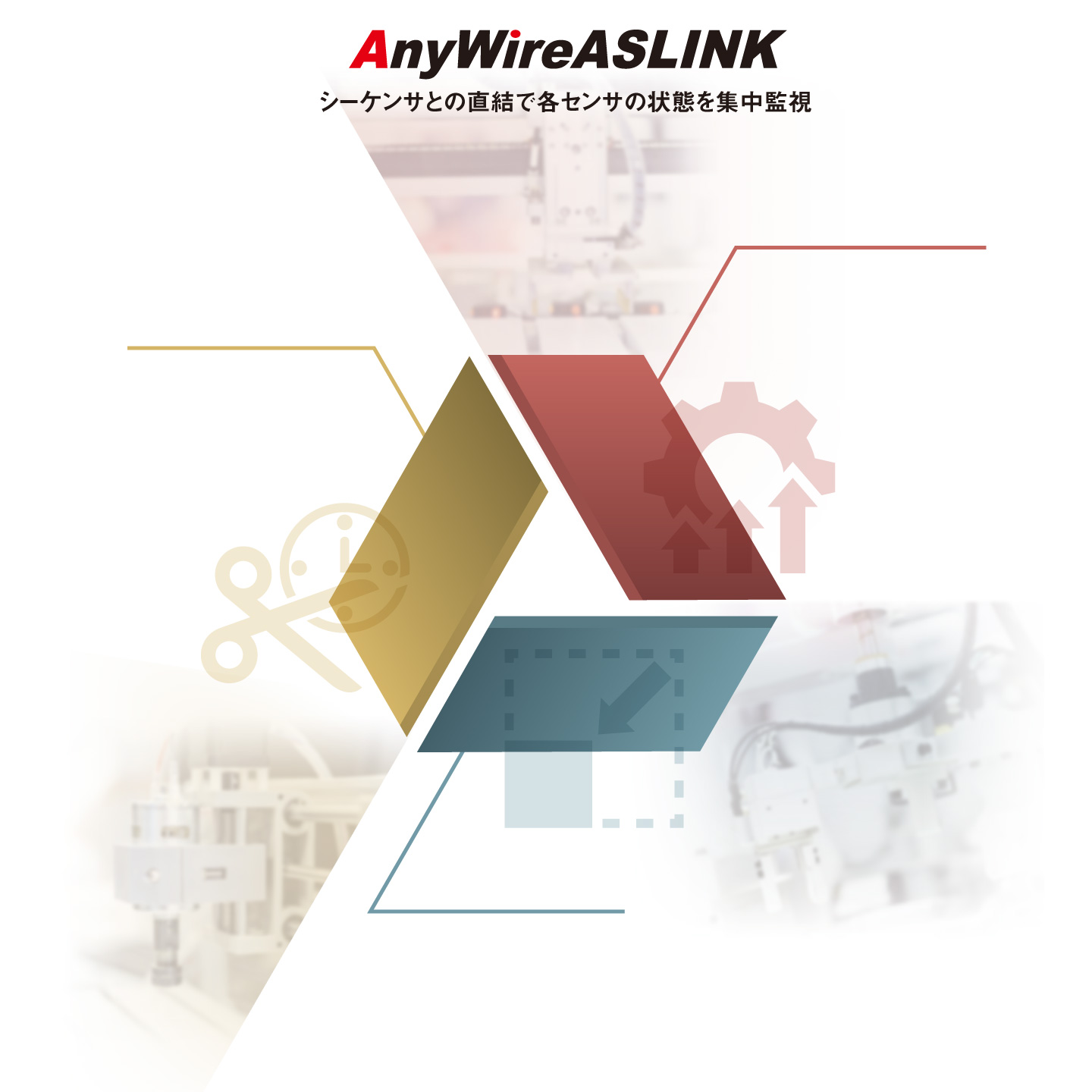 AnyWireASLINKは、シーケンサからセンサの状態を集中監視(診える化)し、稼働率向上、コスト削減を実現します。また、様々なセンサを多用する機械・制御装置内の省スペース化にも貢献します。