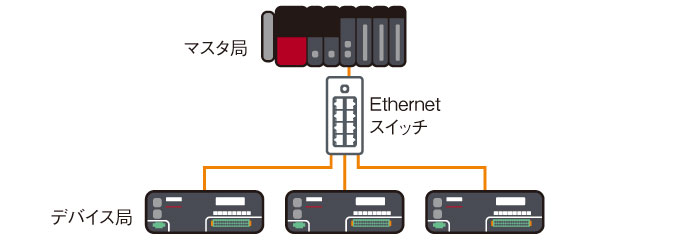 - Ethernetスイッチ使用によりデバイス局の分散配置を容易に実現