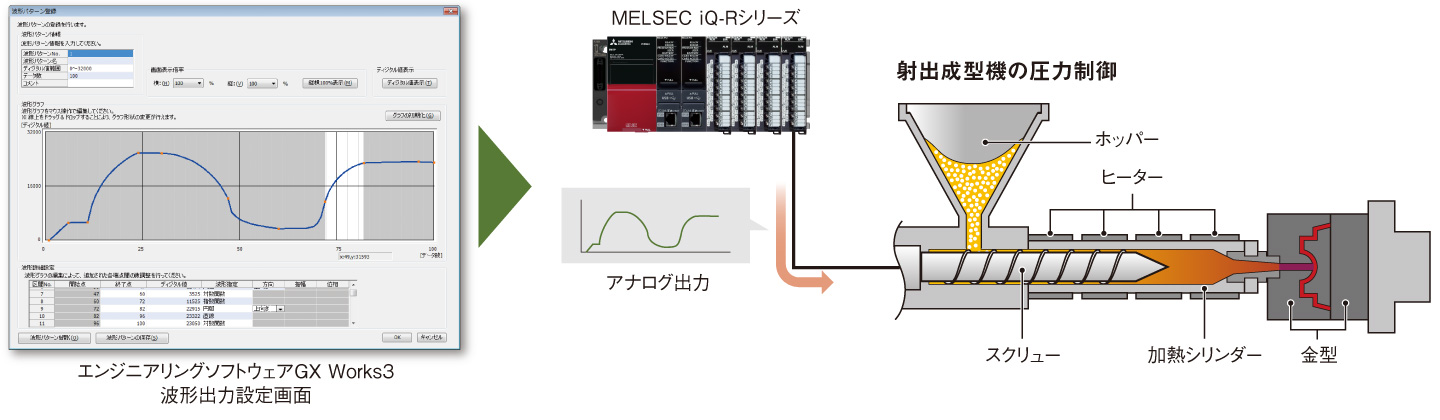 - 波形データをユニットに登録しておくだけで、簡単にアナログ波形制御ができます