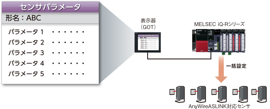 - センサのパラメータ設定を、シーケンサや表示器(GOT)から行えます