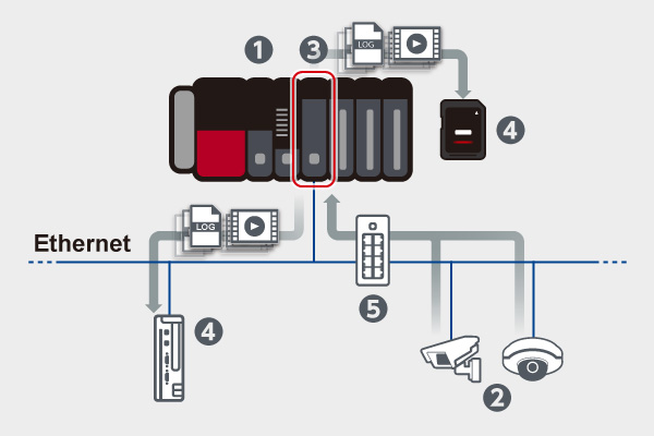 - ❹SDメモリカード または ファイルサーバー(NAS 等)