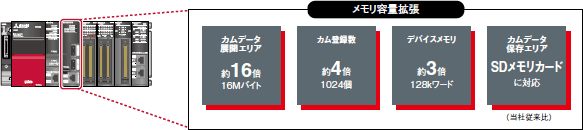 - カムデータ展開エリアを16Mバイトに拡張し、細かいカム分解能で多くのカムデータを制御することができます。