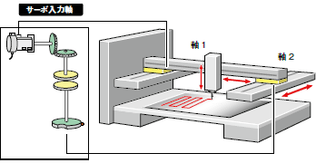 同期エンコーダ軸やサーボ入力軸で全軸を同期させます。