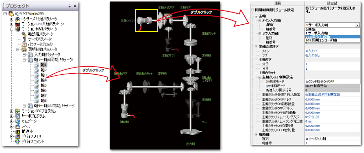 ギア、シャフト、クラッチ、変速機、カムなどの機械機構をソフトウェアに置き換えた同期制御に加え、カム自動生成機能によりカム生成を簡単に実現できます。