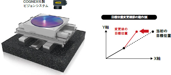 ビジョンシステムから取得したワーク位置を活用し、目標位置変更機能により高速なモーション制御を実現することで、アライメント時間を削減できます。