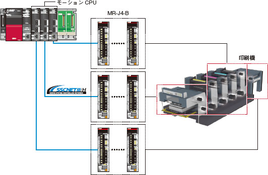 分岐することで、SSCNETⅢ/Hに接続できる機器をフレキシブルな配線で分散配置できます。