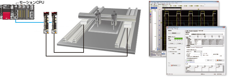 モーション演算周期に同期したデータ収集と波形表示により、動作確認、トラブルシュートを強力に支援します。