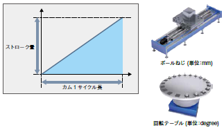 - ●出力軸はカムデータ (演算プロファイル) に合わせたカム動作となります。