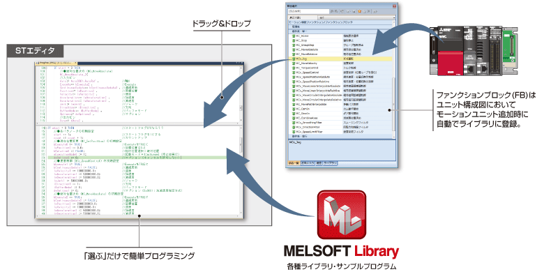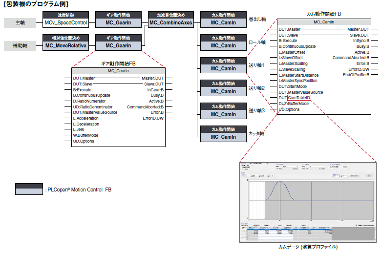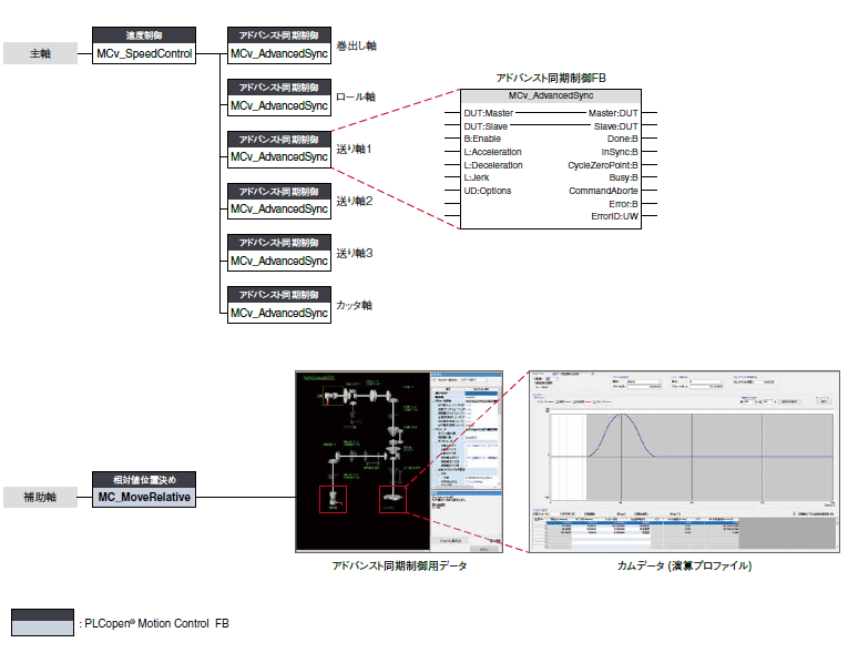 - ●国際的な標準規格であるPLCopen®Motion Control FBのライブラリを使用してプログラムできます。