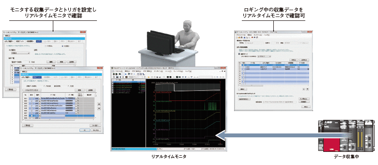 GX LogViewerには、オフラインで使用するデータロギングとリアルタイムモニタがあります。