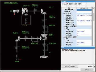 補助軸、クラッチ、ギア、変速機などの同期モジュールをグラフィカルに設定できます。