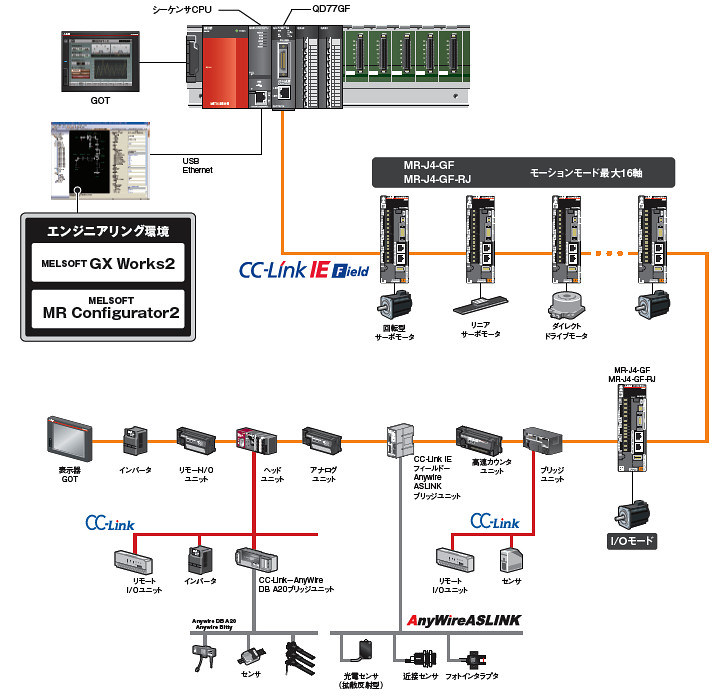 デバイス局:最大120 局(モーションモード対応サーボアンプ16台+I/O機器104台)