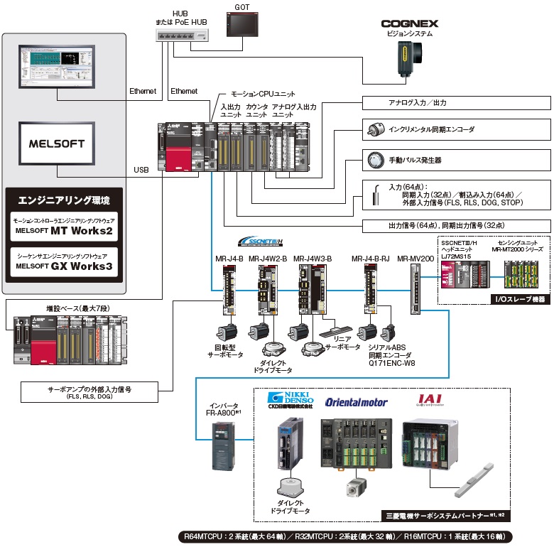 :パートナー製品、およびインバータFR-A800は、モーションコントローラに対応したバージョンを使用してください。