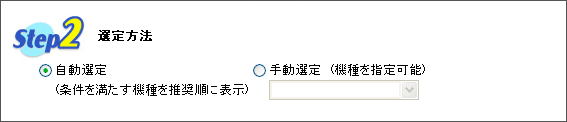 ※推奨機種の選択画面は、Step 2で「自動選定」を選択した場合のみ出てきます。