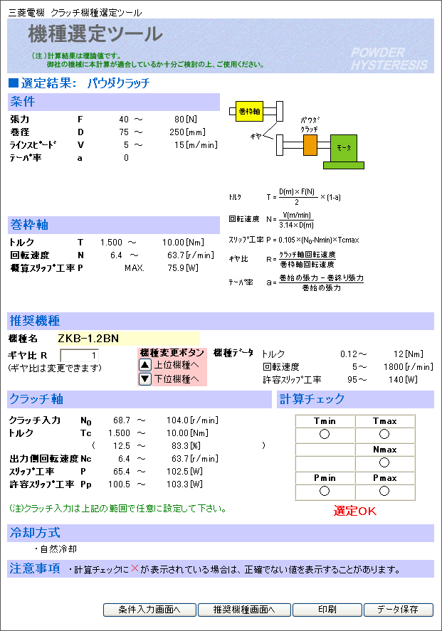 機種を選定する クラッチ・ブレーキ機種選定ツール