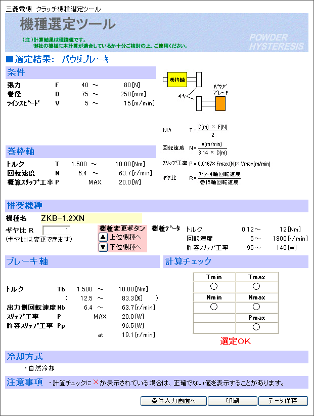 | 条件入力 | 張力:40~80[N] 巻径:75~250[mm] ラインスピード:5~15[m/min] |