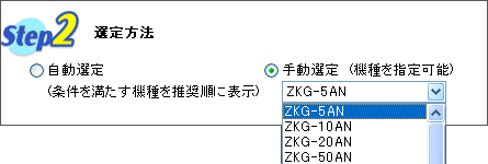 機種が決まっている場合は「手動選択」を選択し、機種を選択します。