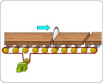 クラッチブレーキ付ギヤードモータ駆動から、コストダウンと切断頻度アップを図る。