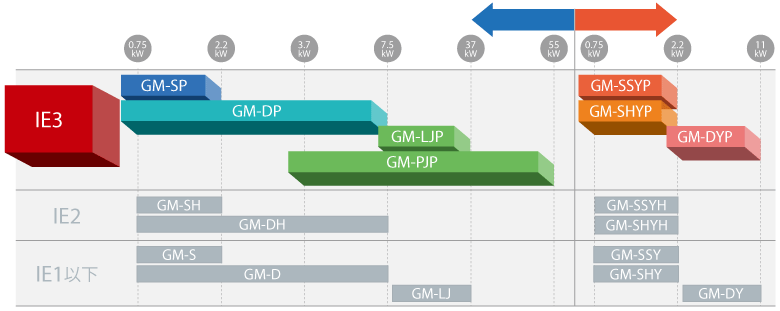 IE2効率での規制は2011年1月1日より実施されていますが、今後段階的にIE3へ移行していきます。